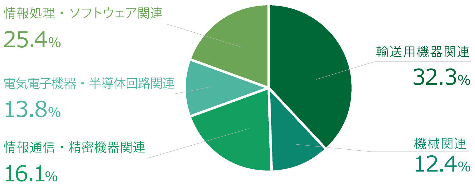 輸送用機器関連 | 自動車(ボディ、シャーシ、トランスミッション、エンジン、各種内外装品など)、車載用製品(カーエアコン、カーナビゲーション、エンジン制御装置・各種電子制御装置など)、航空機など |